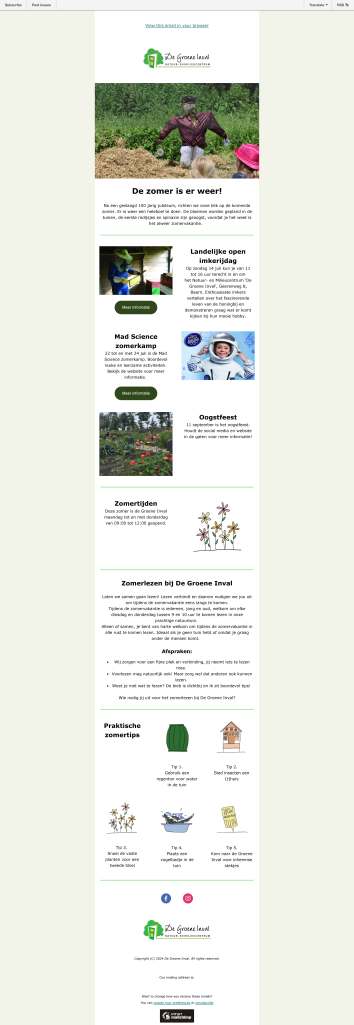 Om de e-mails van de Groene Inval te stroomlijnen en alle contactgegevens op dezelfde plek te hebben, is er voor de CRM Mailchimp gekozen. Vervolgens heb ik een template gemaakt voor nieuwsbrieven in de juiste huisstijl.